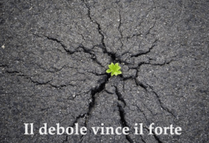 b) il debole vince il forte – questa affermazione constrasta decisamente con il nostro pensiero comune. Nella logica taoista, invece, poggia su una ovvia constatazione: la goccia scava la pietra, l’acqua scorrendo genera i canyon; il vento scolpisce le montagne, facendo urtare i sassi li sgretola producendo la sabbia.